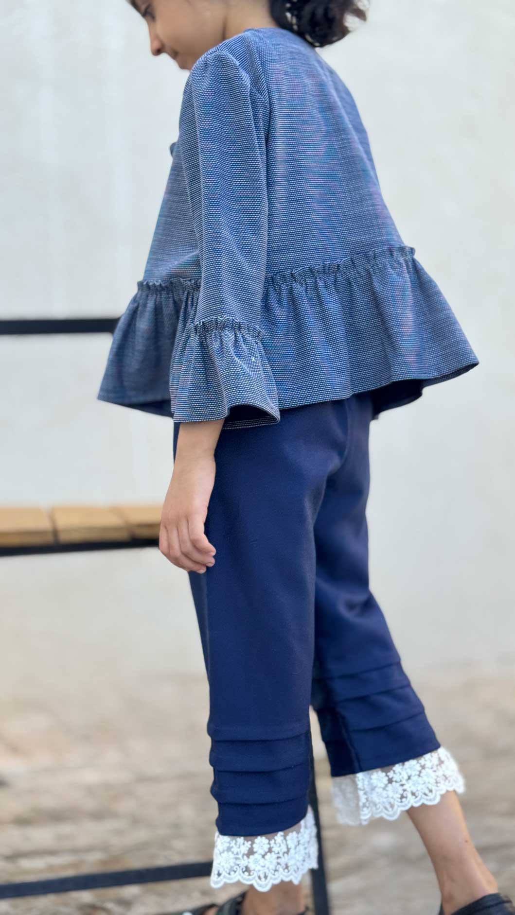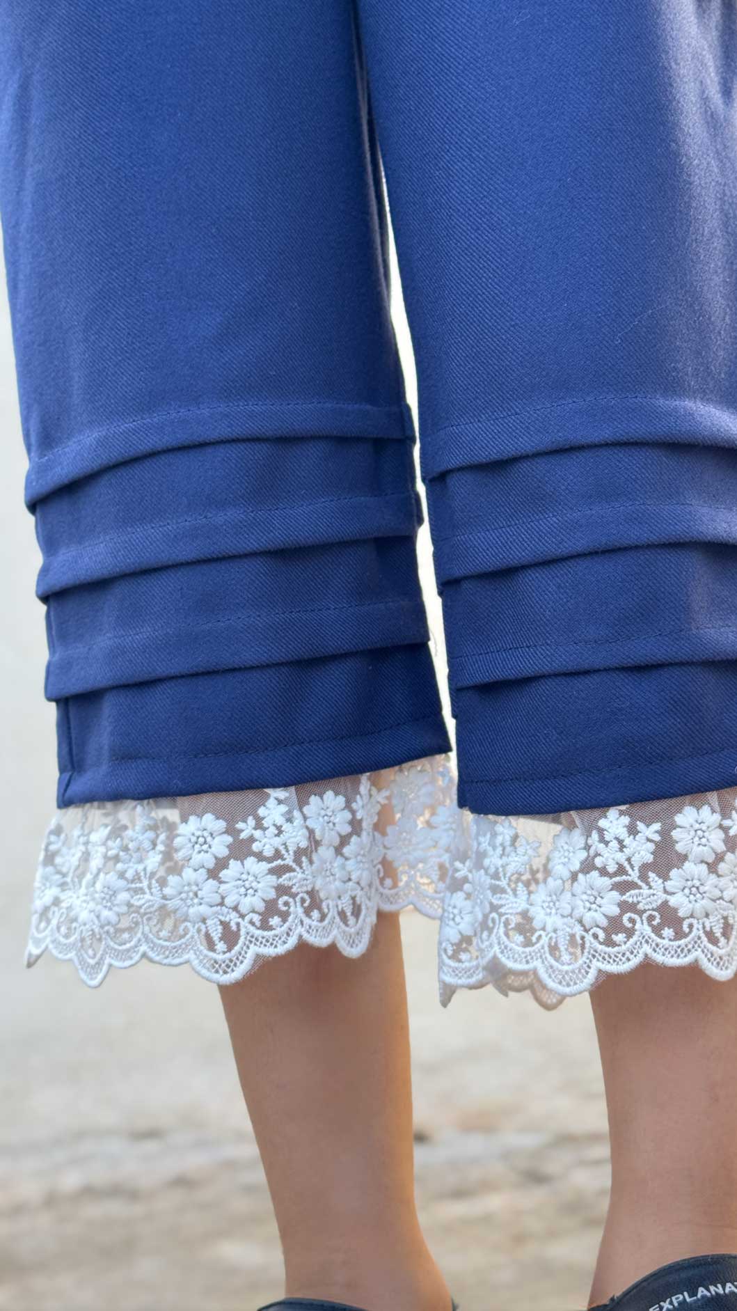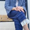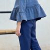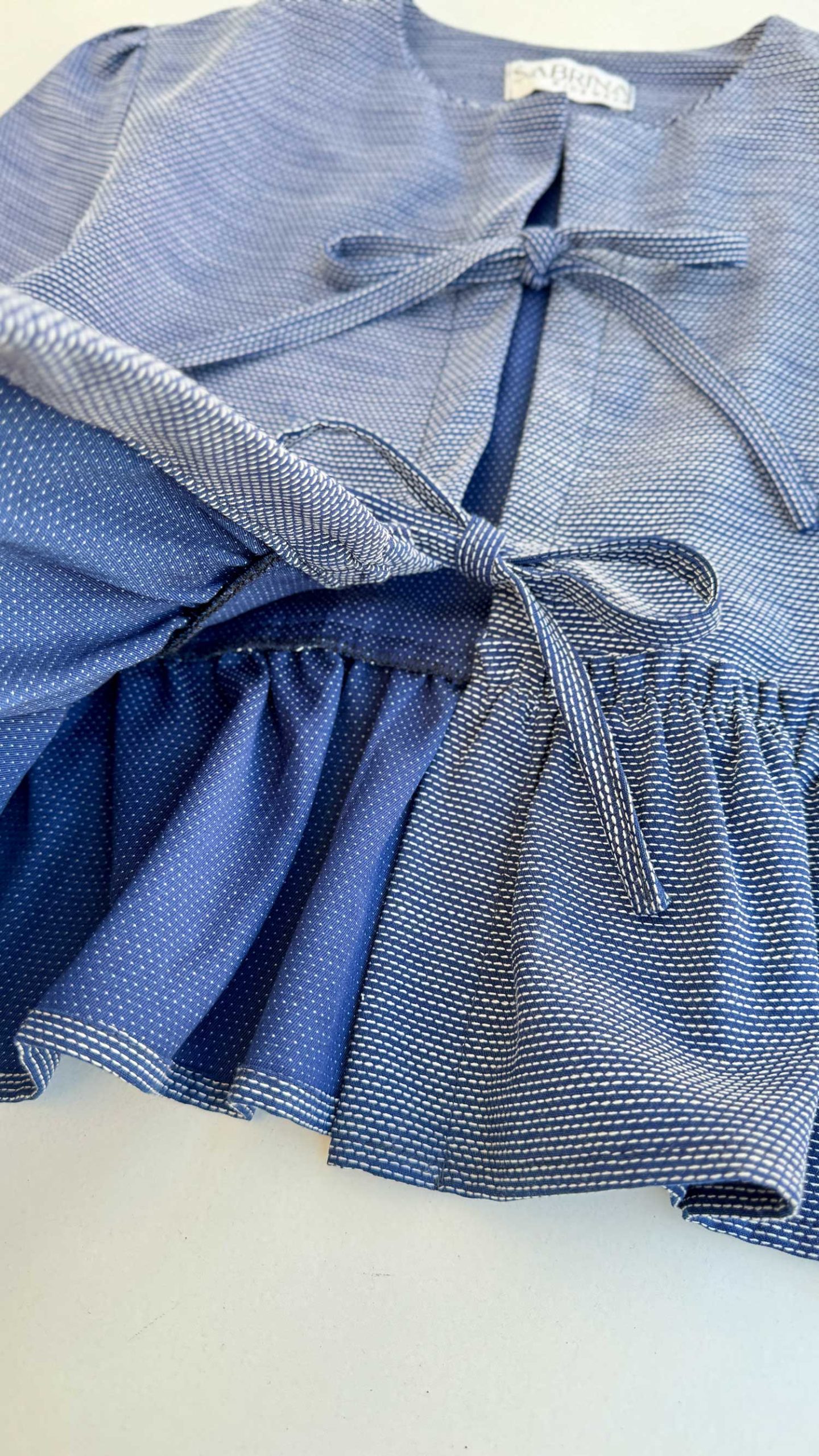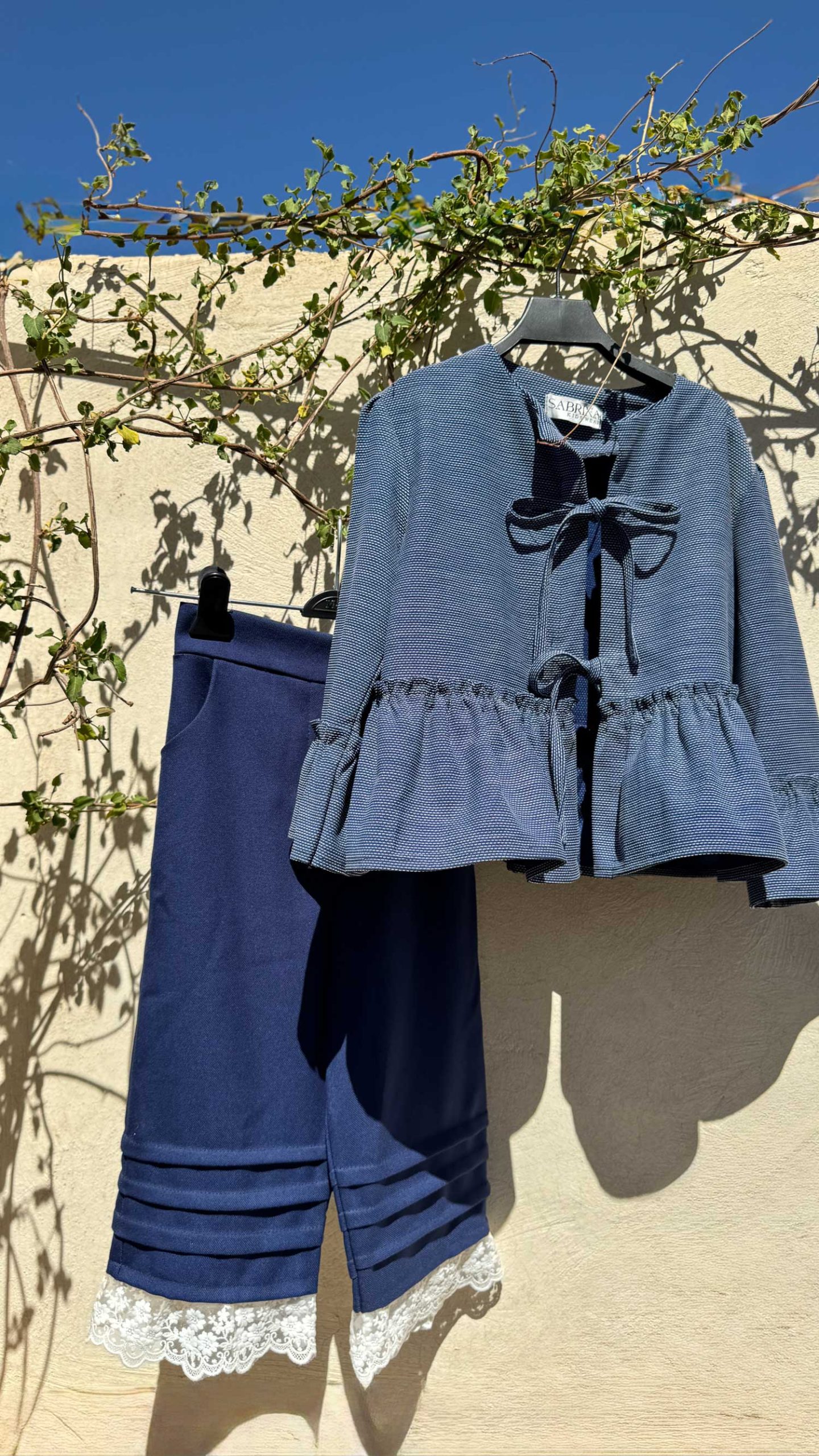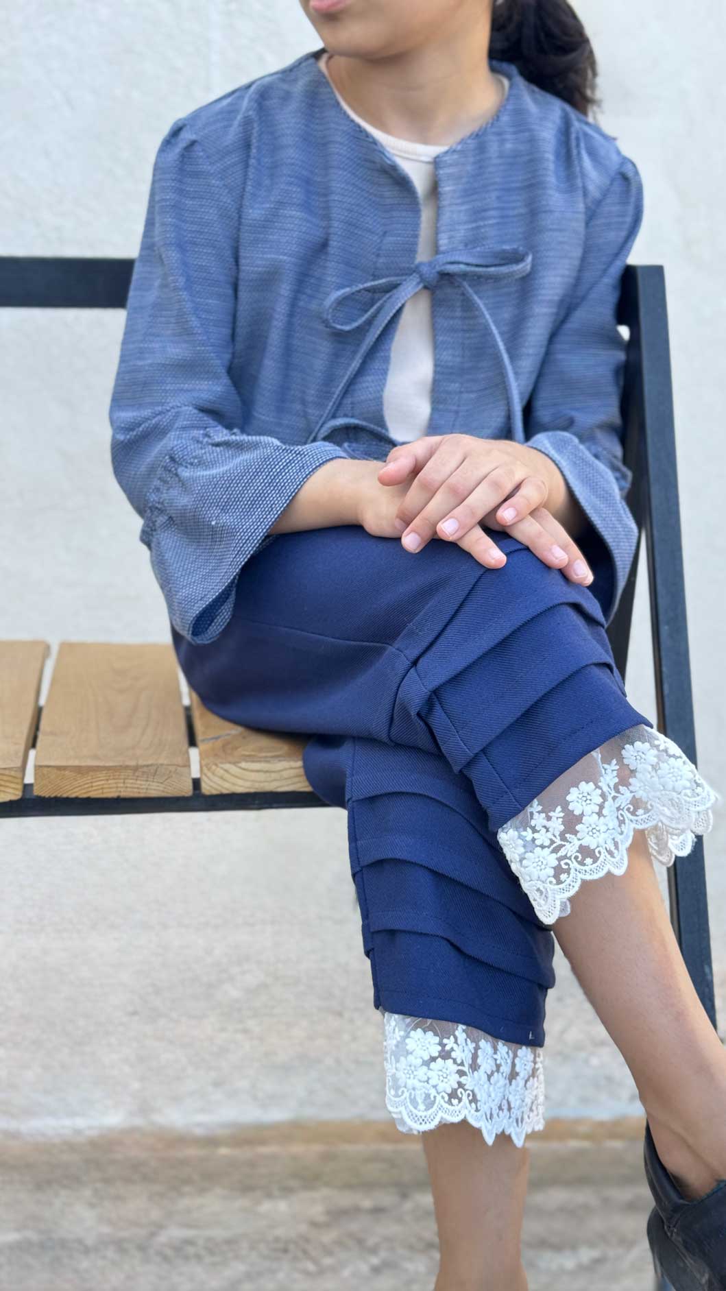 جلو لباس بندک دارد/ سرآستین پرک دارد/ پشت کمر شلوار کش دارد/ جیب دارد