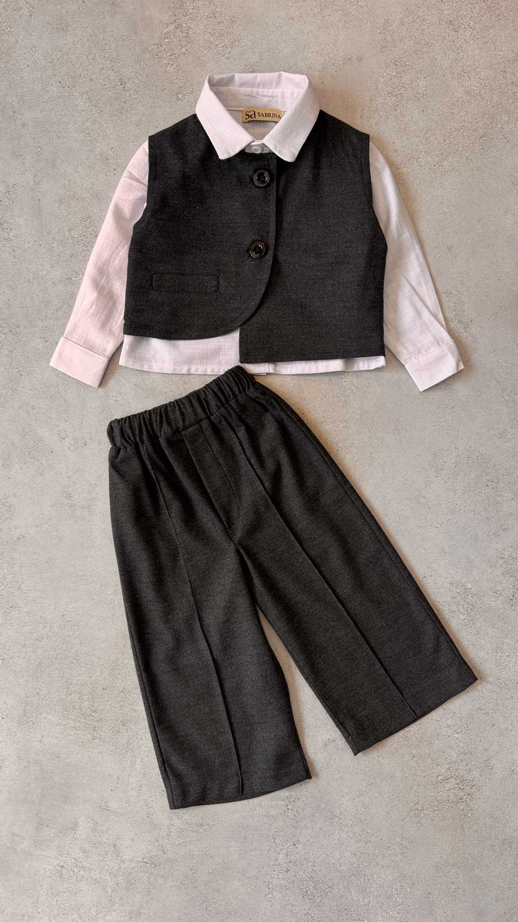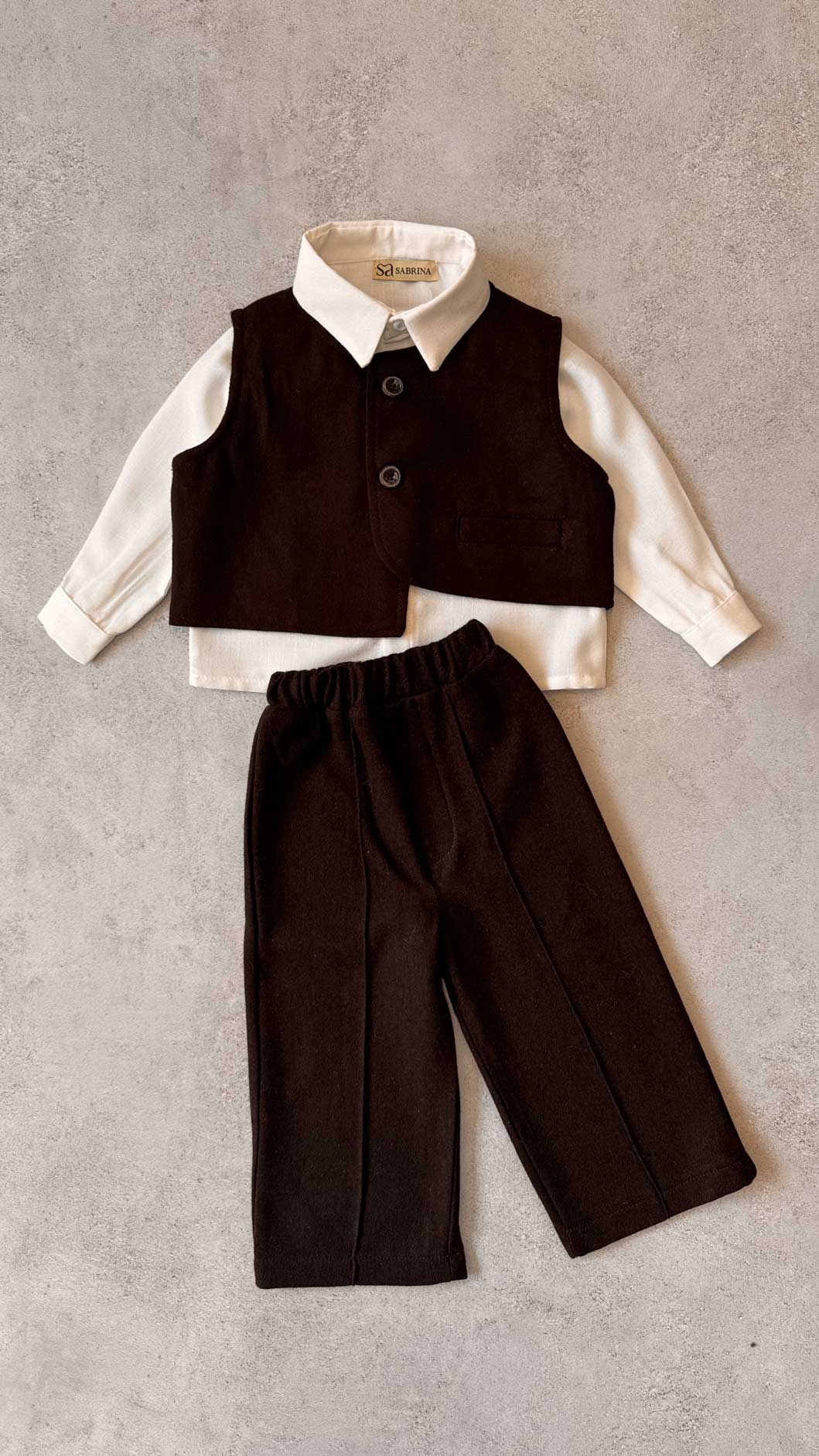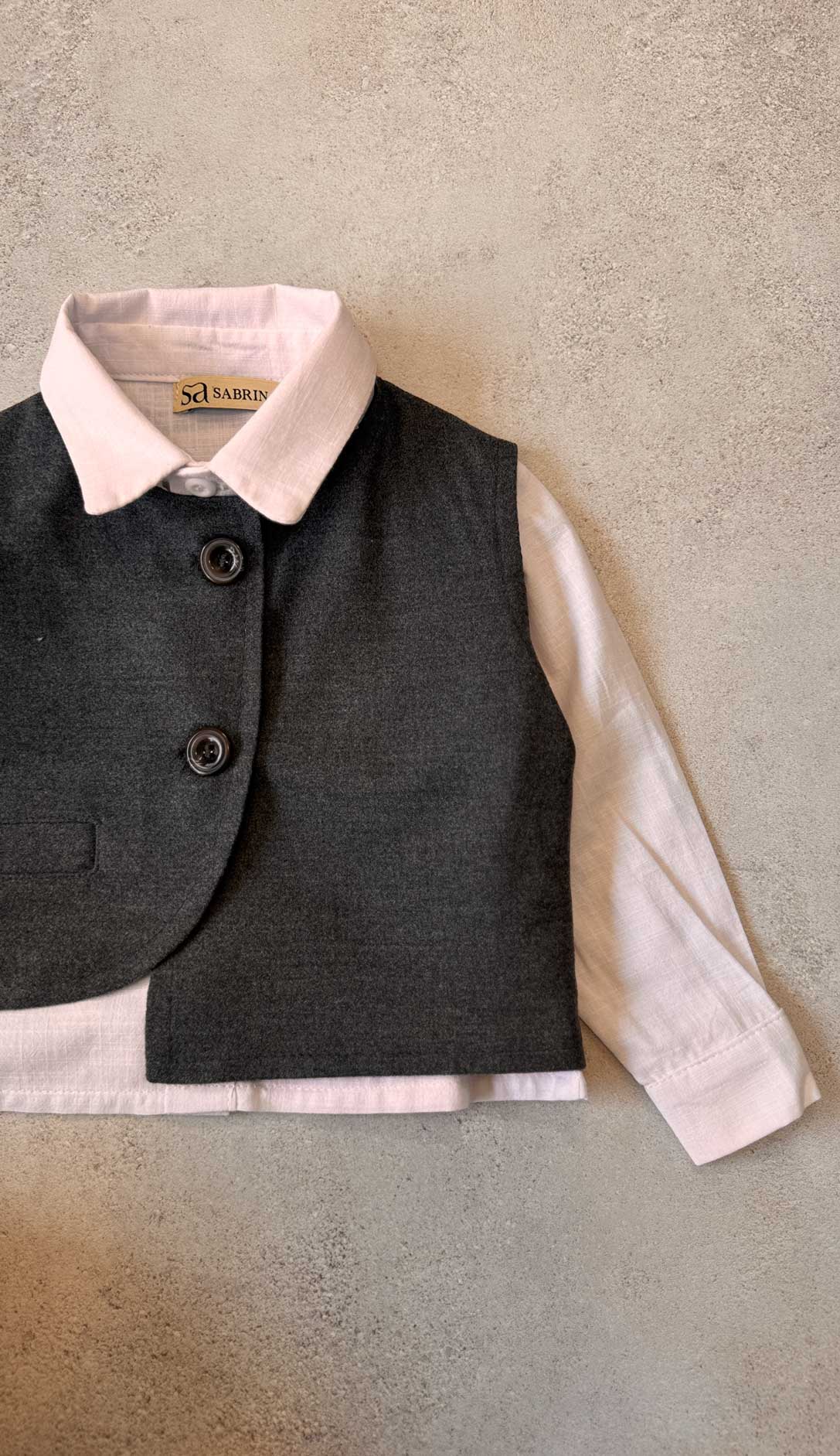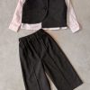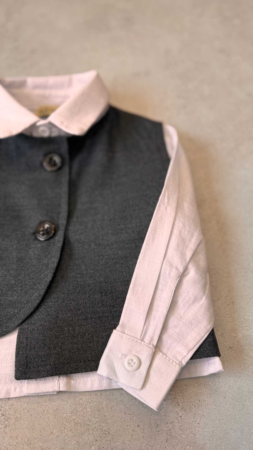 جنس فوتر بهاره، بلوز جلو دکمه، استین مچی، وست استرکشی شده، کمر شلوار تمام کش