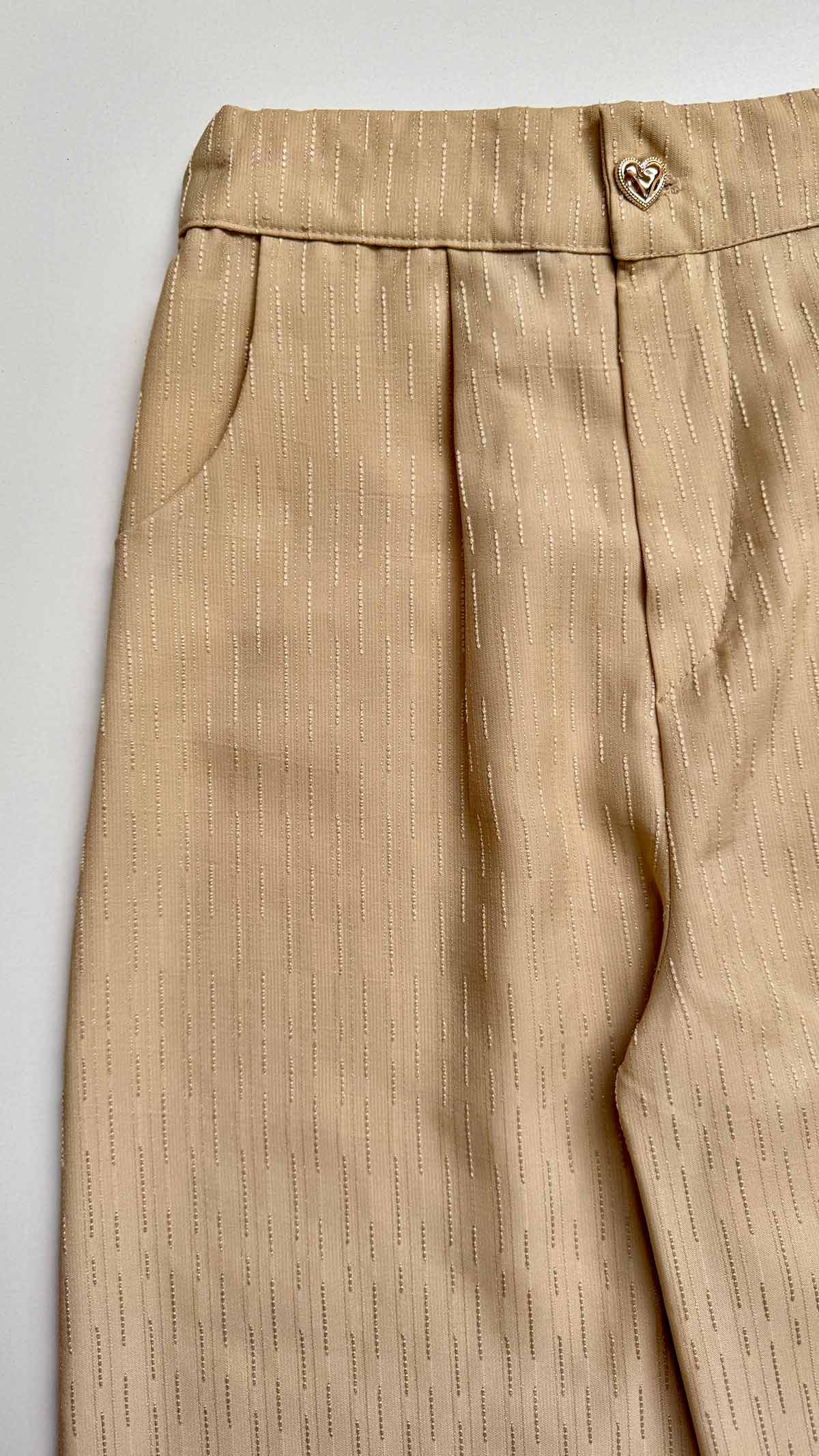 پشت کمر شلوار کش دارد. شلوار جیب و زیپ دارد. دمپا راسته